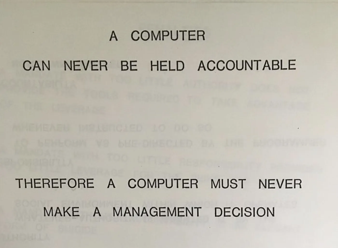 Seiner Zeit voraus: Grundsatz aus einem internen IBM-Schulungsdokument von 1979.